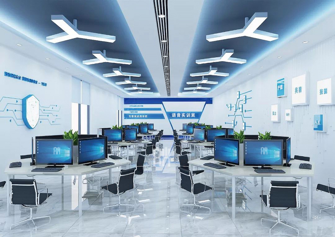 实训室配有语音通信交换主机、语音通信交换分机、语言学习终端、系统管理软(语音训练软件)、操作管理主机、耳机(带耳麦)、教师控制台等先进设备以及英语自主学习软件、英语口语训练管理系统、教师后台数据管理系统、语音学习管理平台等功能与模块构成的系统管理软件。